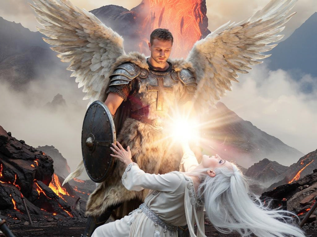 Across skies older than time, where stars sing like prayers and angels guard the fragile threads of creation, one guardian dares to defy eternity itself.
